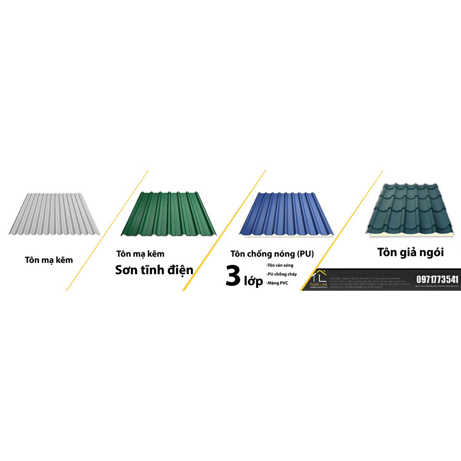các loại tôn thường được sửa dụng.